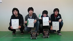 平成25年3月17日(日)ロボカップジュニア北信越大会が長岡市で開催されました。本校からはロボティクス部の学生9名が出場しました。サッカー部門ではA、Bの2チームが出場し、Bチームが優勝、Aチームが3位という成績を残しました。レスキュー部門に出場したチームは奨励賞を受賞しました。