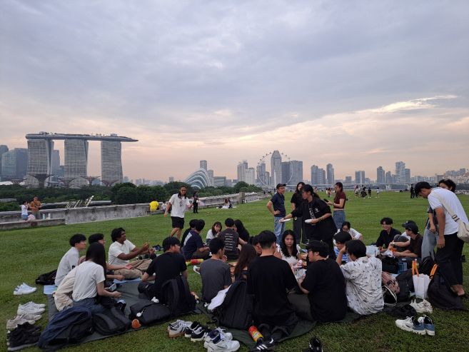 3校の教員による「Lecture: Environmental Challenges」で課題解決の視点を学び、その後のグループワークでは、学生たちは互いに意見を交わしながら活発に議論を深めました。また、9月10日には環境への取り組みを学ぶ視察研修として Gardens by the Bay を訪問し、循環型社会モデルの実践例と先端的な持続可能システムについて学びました。その後は Marina Barrage でナイトピクニックを行い、学生同士の交流をさらに深めました。最終日には、各グループが課題解決のための提案を、プロトタイプとともに英語でプレゼンテーションしました。3Dプリンタで製作したミニチュアを用いて説明するグループや、IoT技術を活用したアプリケーションを紹介するグループなど、それぞれ創意工夫に富んだ発表が行われました。短い5日間ながら、タイ・シンガポールの学生たちと強い絆を築き、Farewell Party では互いに遅くまで別れを惜しむ姿が印象的でした。