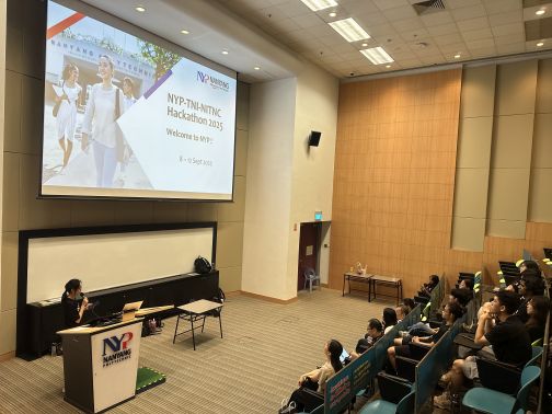 2025年9月6日から9月16日までの11日間、2025年度学生海外派遣研修(シンガポール)を実施しました。9月8日から12日までの5日間は、本校の学生7名に加え、協定校である泰日工業大学(タイ)10名、ナンヤンポリテクニック(シンガポール)10名の計27名が参加し、「NYP-TNI-NITNC Hackathon 2025」を開催しました。テーマは “Environmental Sustainovation: an Asian Perspective” で、アジア地域に共通する環境・社会課題として提示された6つのテーマ(Strengthening Disaster Resilience、Sustainable Tourism / Waste Management in Tourist Areas、Smart Green Factory、Bioinspiration、Efficient Urban Farming、Zero-Waste Public Housing)に対し、3校混成の6グループを編成し、アイデア創出からプロトタイピング、最終発表まで取り組みました。