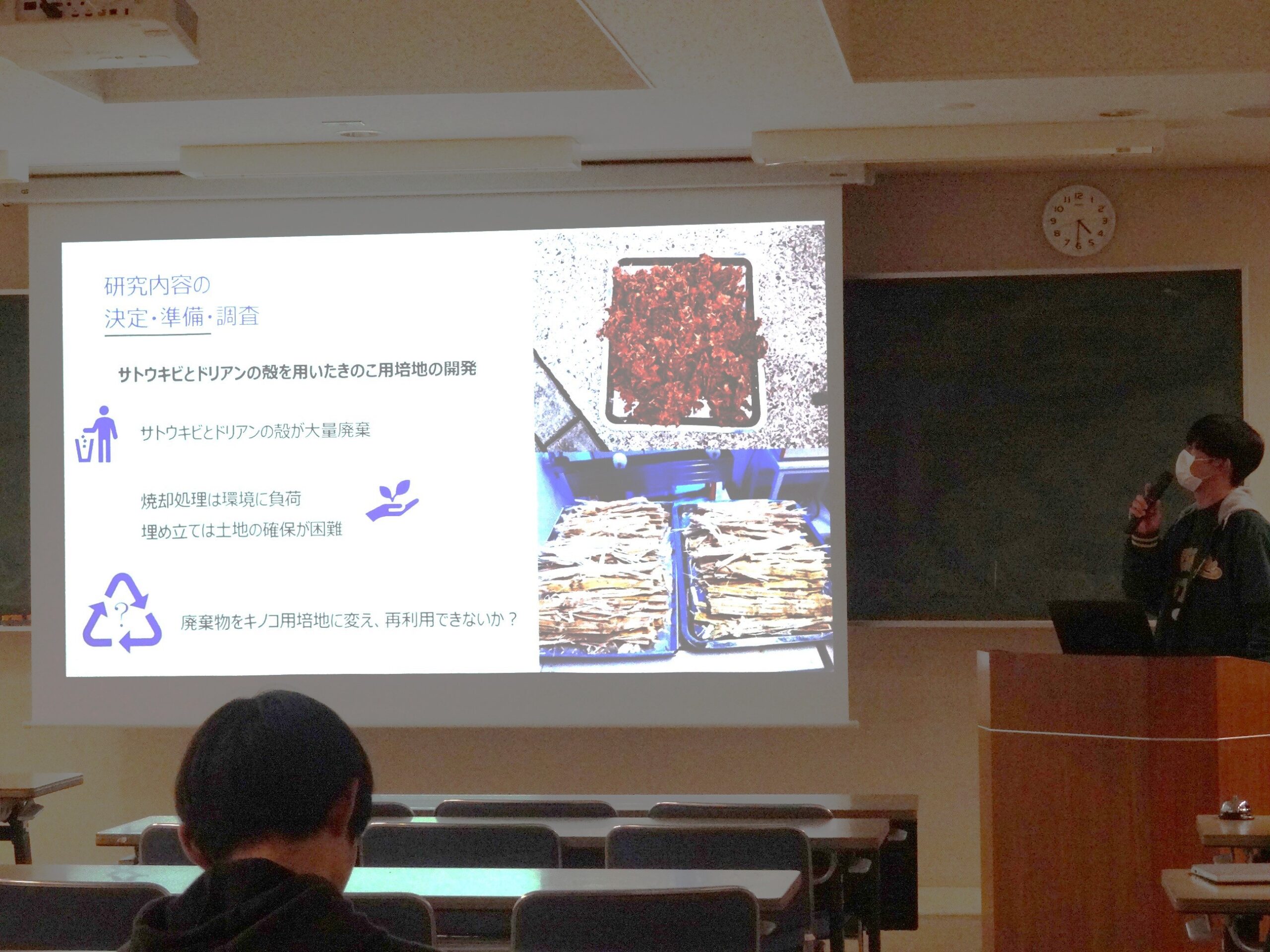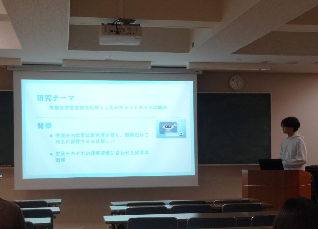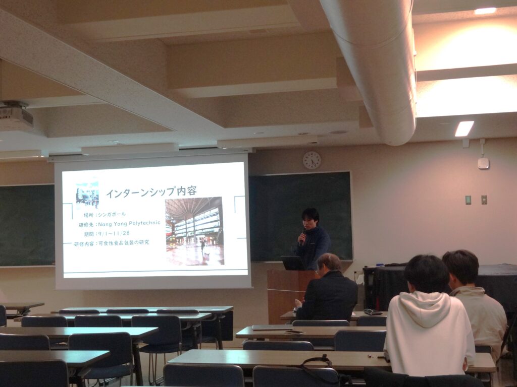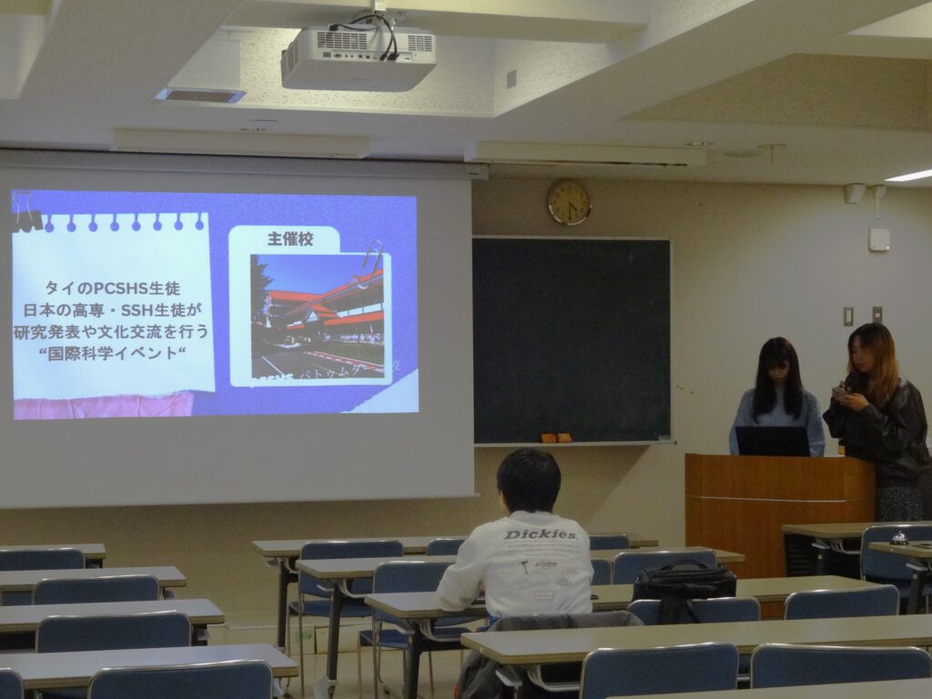 令和7年12月26日(金)、令和8年1月8日(木)に、本校講義室にて2025年度海外インターンシップ報告会、およびサイエンスフェア報告会を合同開催いたしました。