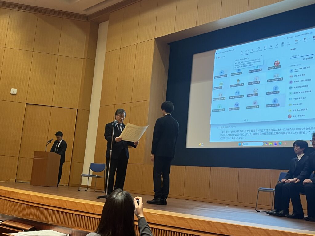令和8年1月30日(金)に、学術総合センター 一橋講堂(東京)にて表彰式が挙行されました。また、令和8年2月5日(木)に本校において受賞の報告を行いました。
