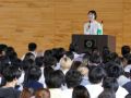 ガイダンスに引き続き,新潟県警から講師をお招きして「いじめ防止研修会」が行われました。 実際の事例を元に,わかりやすくていねいな解説を聞かせていただきました。 学生の皆さんも,スマホいじりや私語をすることなく,真剣に耳を傾けていたようです。
