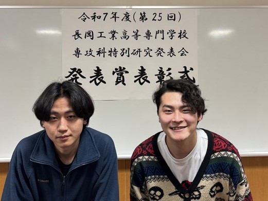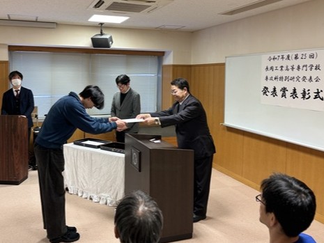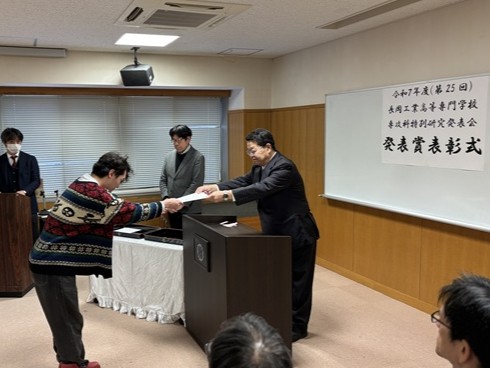 専攻科特別研究発表会で皆川研学生が表彰されました!