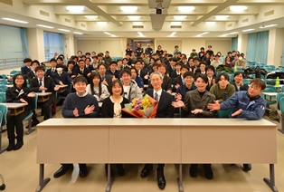 2月3日(火)の卒業研究発表会終了後に、青柳教授の最終講義が開催されました。学内外から多くの学生、卒業生、教職員が参加し、長年にわたる教育・研究活動の集大成となる講義に耳を傾けました。