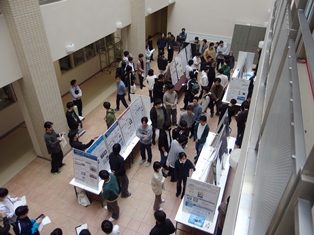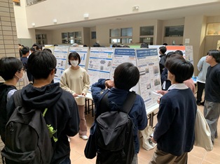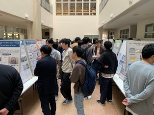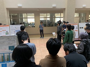 発表はポスターセッション形式で行われ、学科教員や5年生、そして研究室配属を控えた4年生も聴講しました。質疑応答では、先生方や同級生から専門的な質問やコメントが寄せられ、参加学生にとって今後の研究をさらに充実させる良い刺激になったと思います。また、4年生に向けて説明を行うことで、「分かりやすく伝えることの難しさ」および「説明力を高めることの大切さ」を実感した学生も多く見受けられました。
